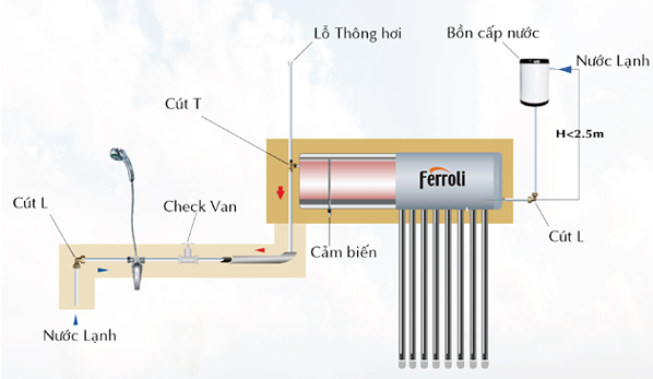 Sơ đồ tham khảo khi lắp đặt máy nước nóng năng lượng mặt trời