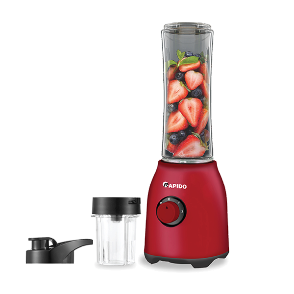 Máy xay sinh tố đa chức năng 2 trong 1: Máy xay sinh tố Rapido RB-300M là sản phẩm thiết kế 2 trong 1 với công năng đặc biệt khi bình xay khoong chỉ có công dụng chứa thực phẩm, hoa quả để để lưỡi dao sắc bén làm nhuyễn mà sau khi xay xong người dùng có thể tháo ra, dùng nắp rót đậy lại và mang theo đi để uống. Như vậy bình xay còn có thêm công dụng khác đó chính là làm bình đựng nước.