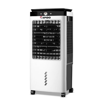 (Mặt trước và màn hình hiển thị của quạt điều hòa không khí Rapido Everest 6000M)